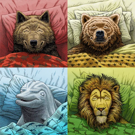 Chronotypes fall on a spectrum, with four categories represented by animals: bear, lion, wolf, and dolphin. Understanding your chronotype can help you to optimize your schedule to get the most out of your days (and nights).