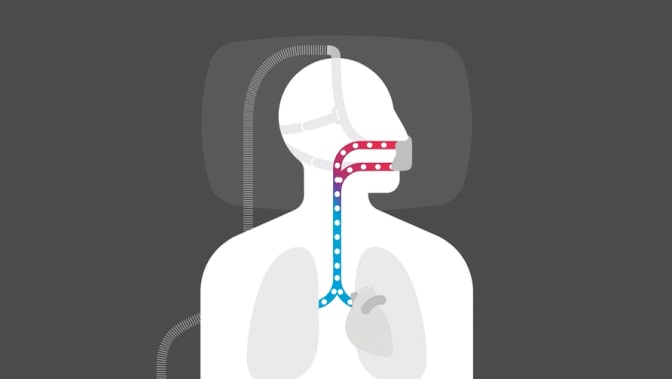 Air is propelled by the machine through the tubing and into the mask, allowing pressurized air to enter the airway.