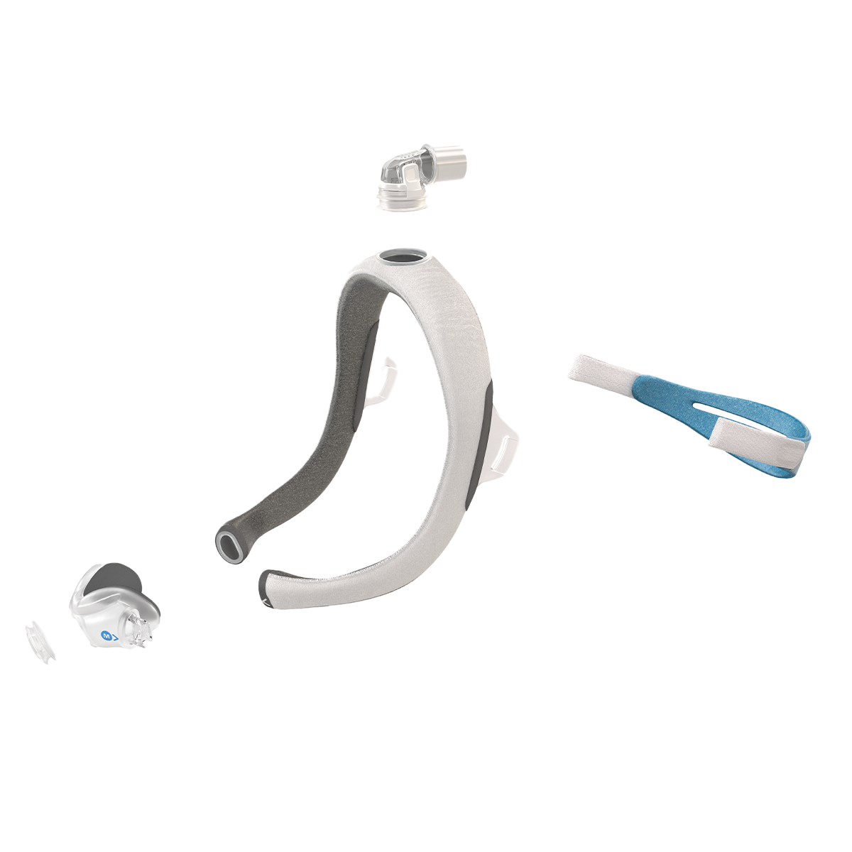 ComfiSoft™ cushion made of fused silicone and fabric creates a soft, moisture-wicking seal around your nostrils