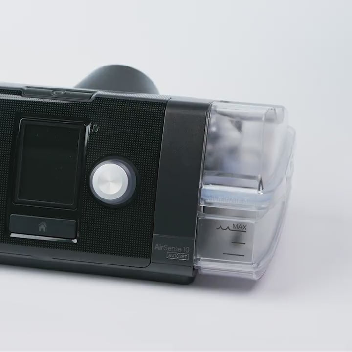 The HumidAir Humidifier is a key component of ResMed AirSense and AirCurve devices. When paired with the ClimateLineAir heated tubing, you can set your machine to automatically adjust temperature and humidity levels based on your surroundings throughout the night.