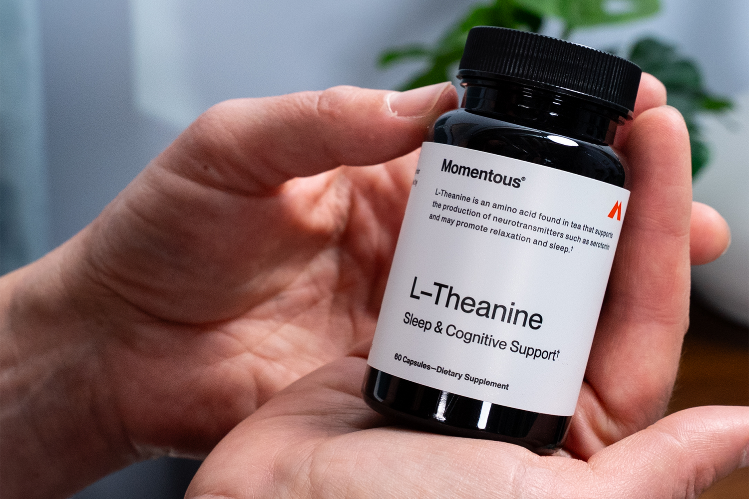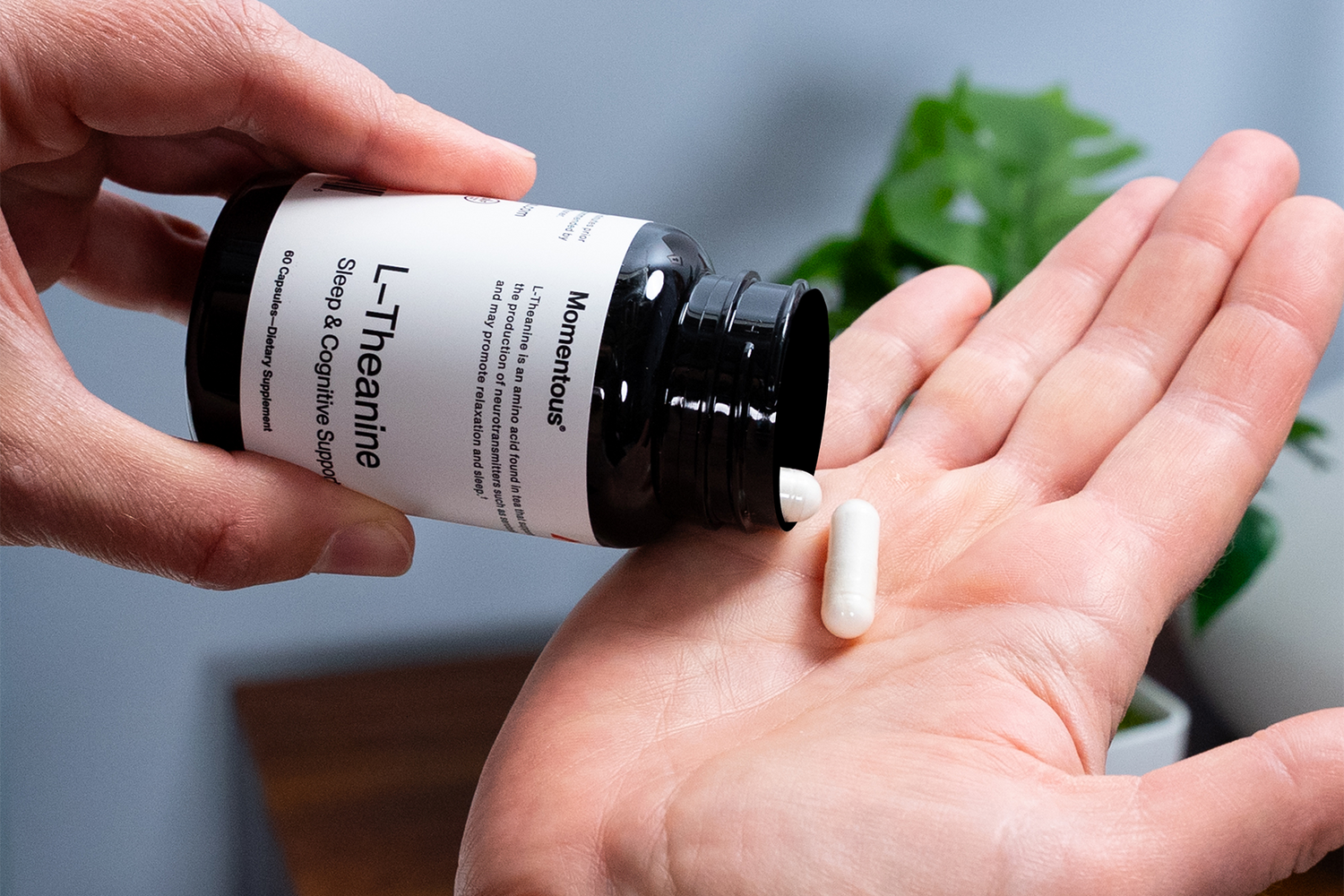 Momentous L‑Theanine offers a scientifically supported way to promote calm, focus, and better sleep without next-day drowsiness. Made from an amino acid found naturally in green tea leaves, this supplement boosts the production of calming neurotransmitters like GABA and serotonin, while encouraging the brain’s alpha-wave activity for relaxed alertness.