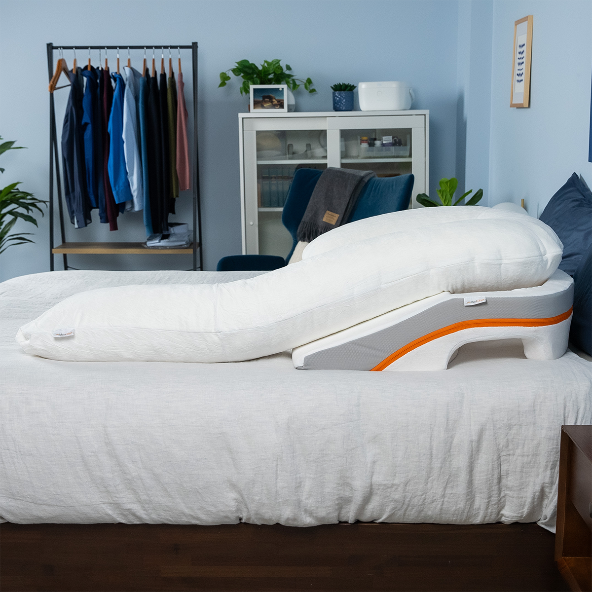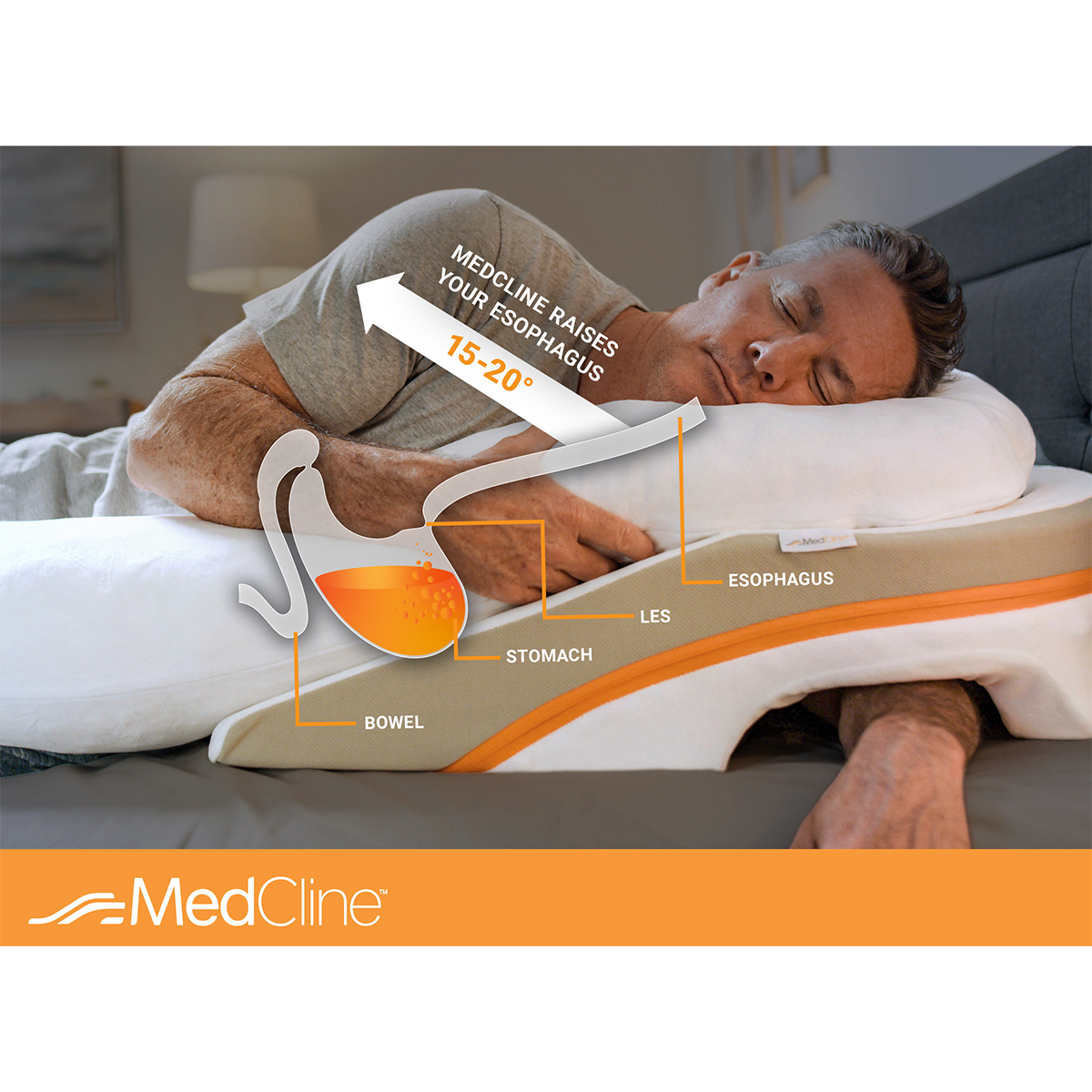 - The dual pillow design of the MedCline Acid Reflux Relief Wedge and Body Pillow System promotes comfortable side sleeping.