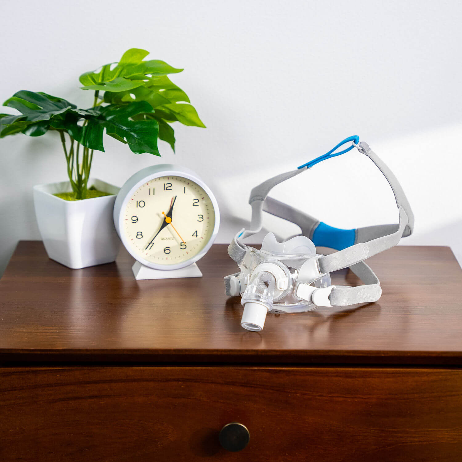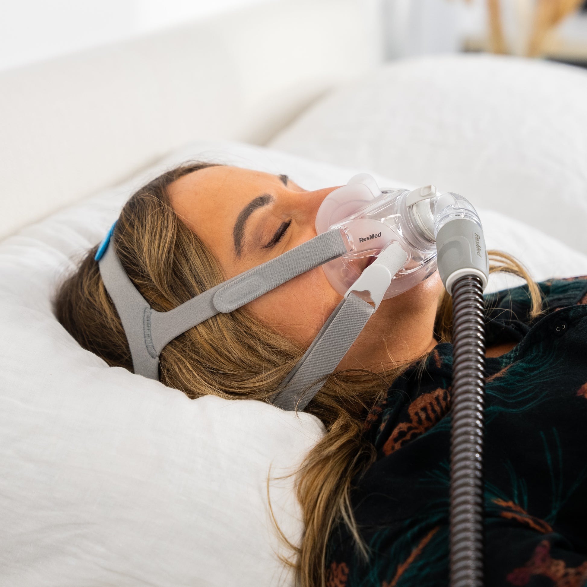 The ResMed AirFit™ F30 Full Face CPAP Mask is a full face mask with a low profile, making it a good choice for sleepers who prefer masks that don’t cover the entire face. The streamlined design leaves the forehead unobstructed, while the cushions sit underneath the nose instead of over it. This allows users to wear glasses or watch TV without a mask obstructing their view.