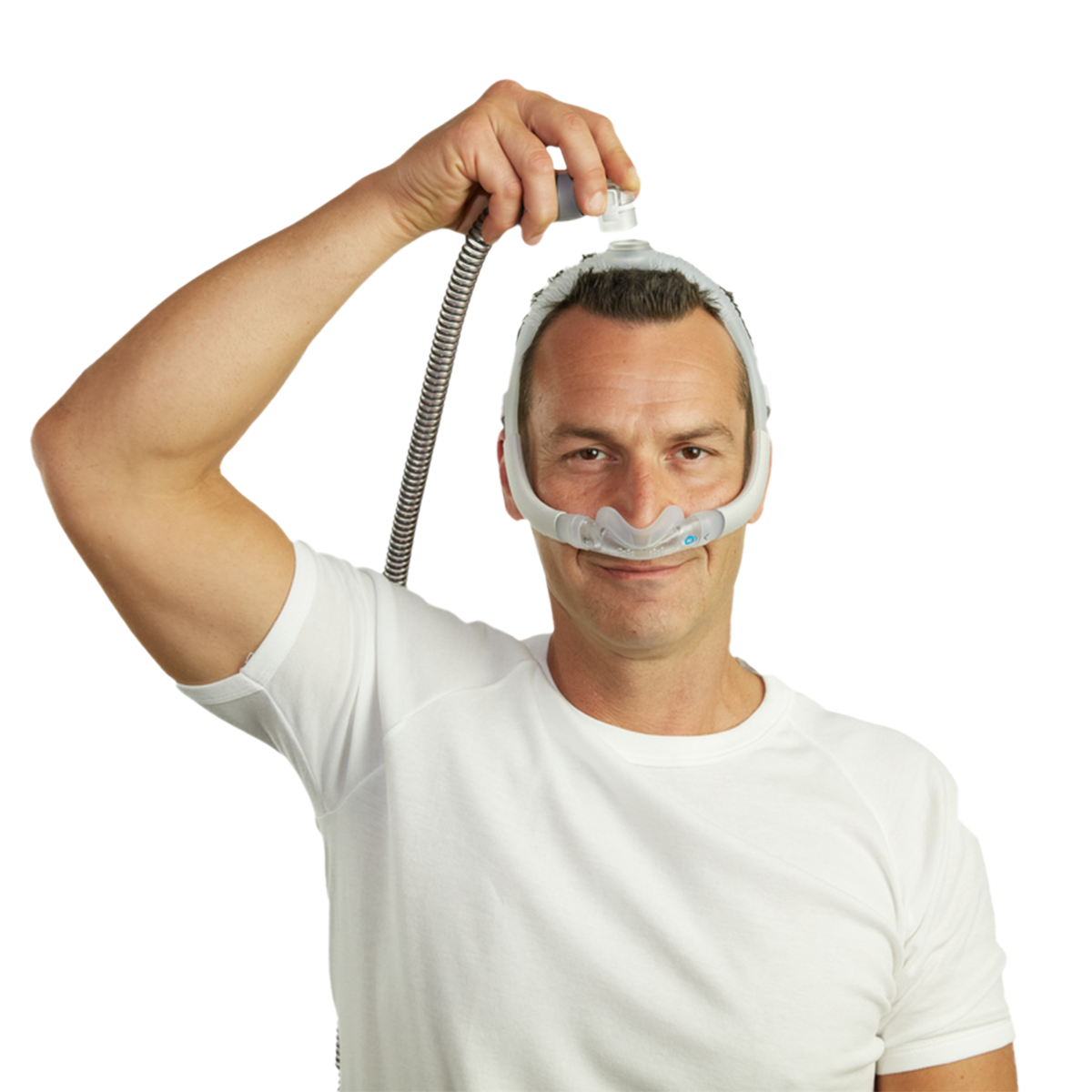 The ResMed AirFit N30i has a low-profile and minimally invasive design that prevents movement restriction and obstructed vision. Under-the-nose cushioning prevents marks and irritation on the nose bridge, which some CPAP users experience with traditional full-face masks. Top-of-head tubing also allows sleepers to use any position and switch between them easily.