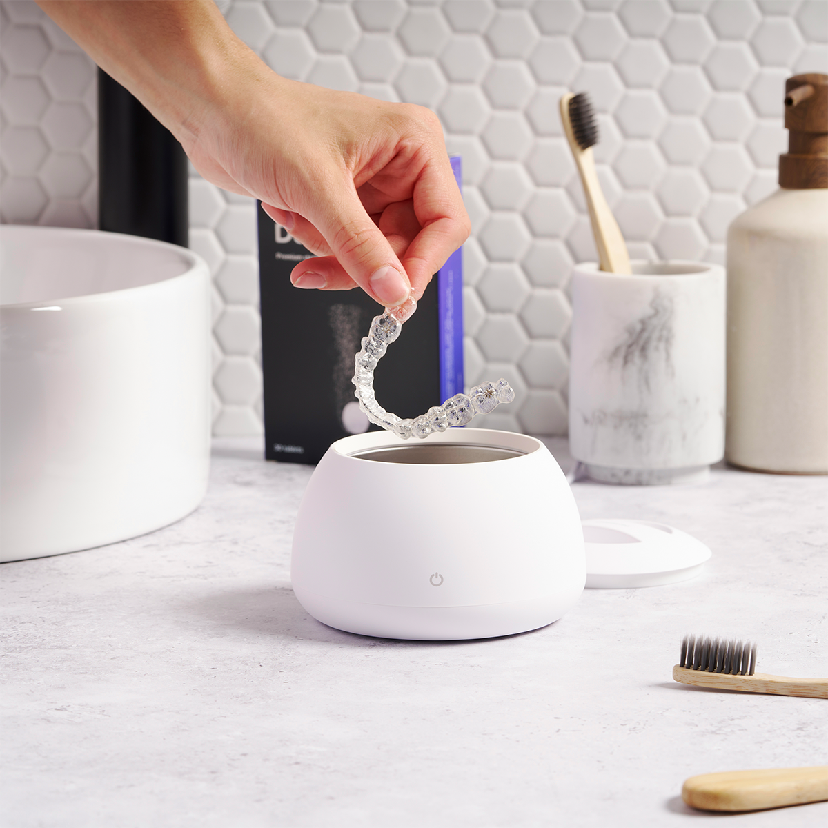 But the Zima Dental Pod uses ultrasonic technology to gently but thoroughly clean your appliance—no scrubbing, no damage, no residue.