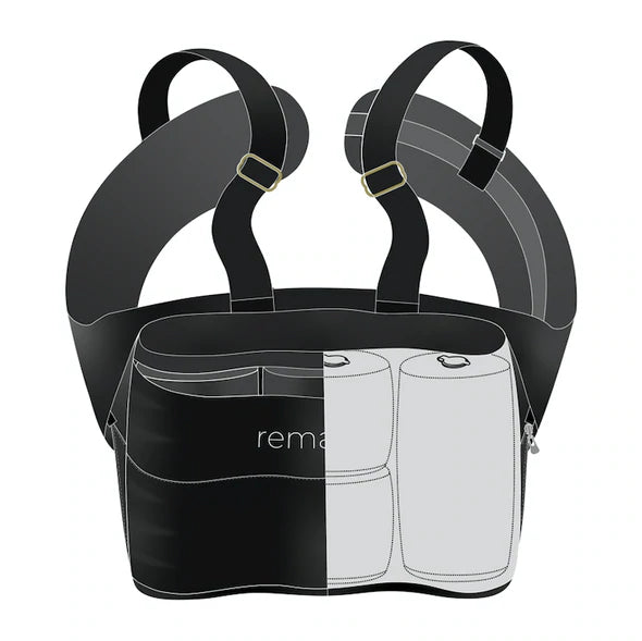 - Shoulder straps and Velcro keep the belt secured